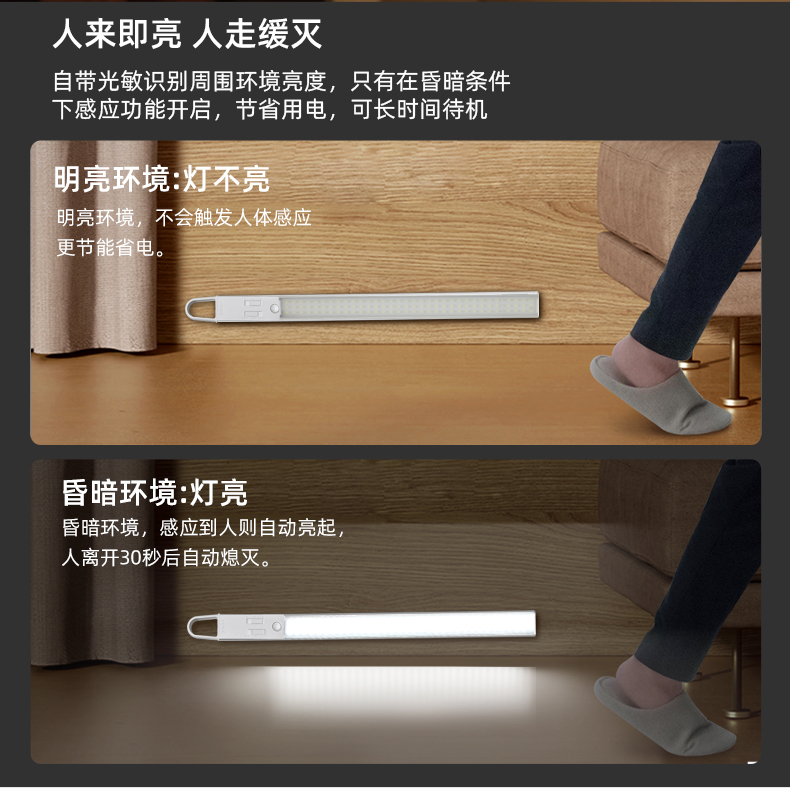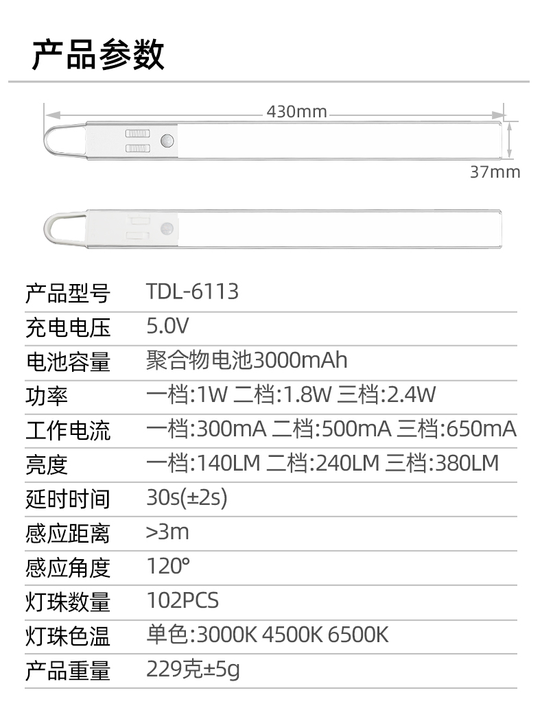 TDL-6113拓迪室内人体感应橱柜灯 户外智能野营灯LED充电衣柜灯长条磁吸挂式灯