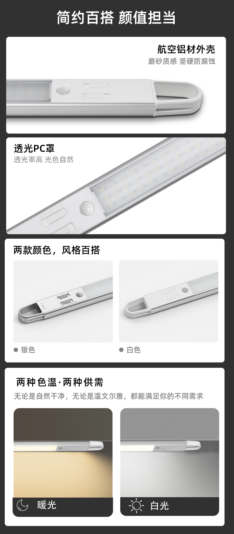 4TDL-6113拓迪室内人体感应橱柜灯 户外智能野营灯LED充电衣柜灯长条磁吸挂式灯