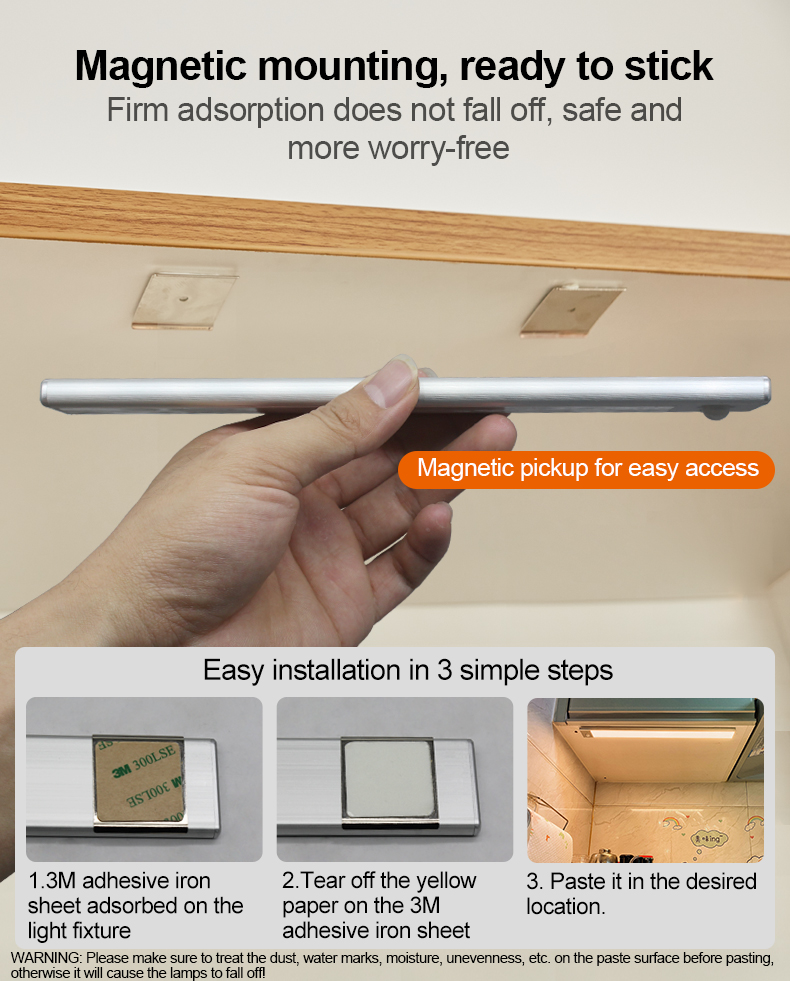 4TDL-6110X拓迪超薄人体感应衣柜灯 led免布线磁吸鞋柜小夜灯三色无极调光橱柜灯