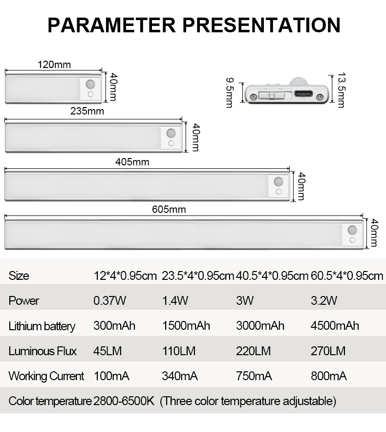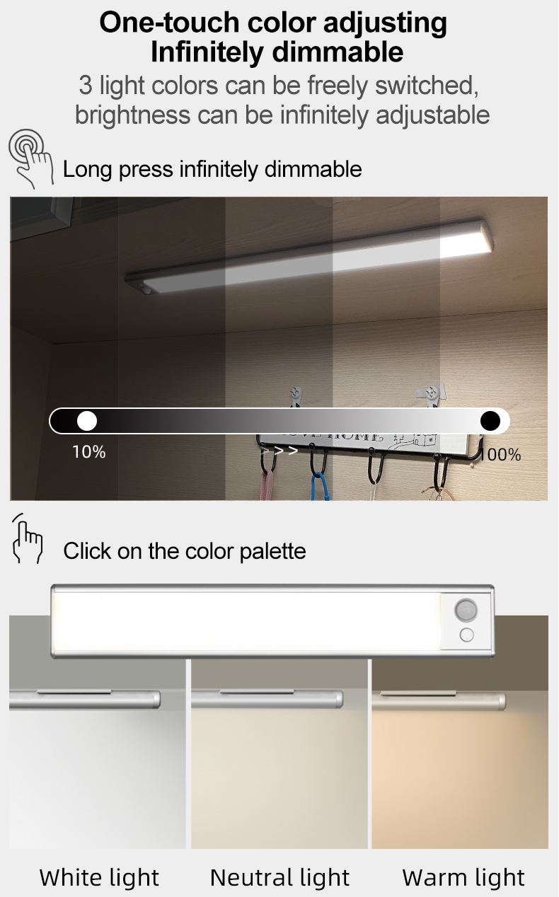 TDL-6110X拓迪超薄人体感应衣柜灯 led免布线磁吸鞋柜小夜灯三色无极调光橱柜灯