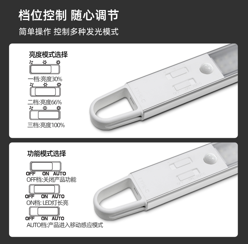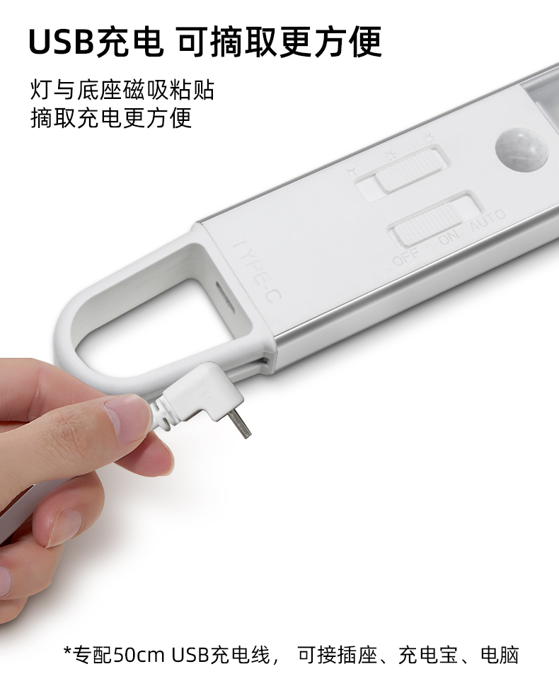 4TDL-6113拓迪室内人体感应橱柜灯 户外智能野营灯LED充电衣柜灯长条磁吸挂式灯