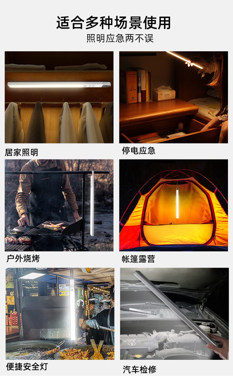 TDL-6113拓迪室内人体感应橱柜灯 户外智能野营灯LED充电衣柜灯长条磁吸挂式灯