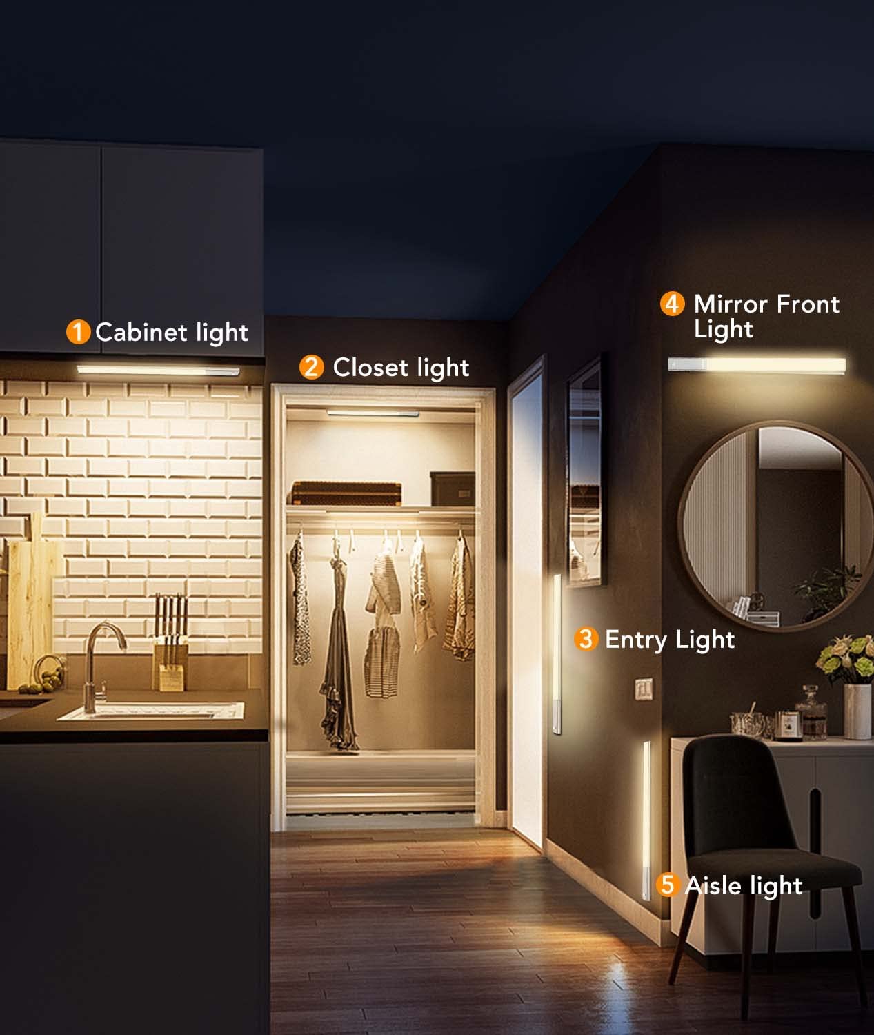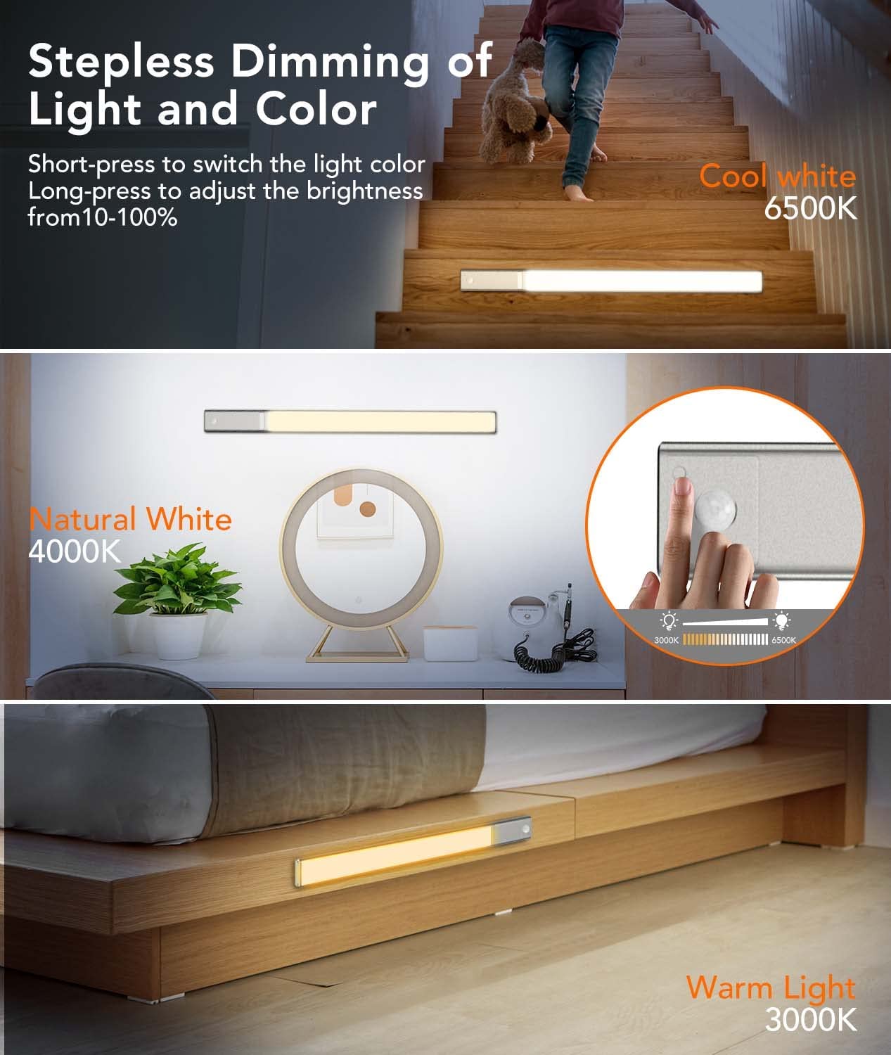 4TDL-6111-T拓迪分体式人体感应橱柜灯 磁吸自粘衣柜灯带Type-C充电式酒柜led灯条