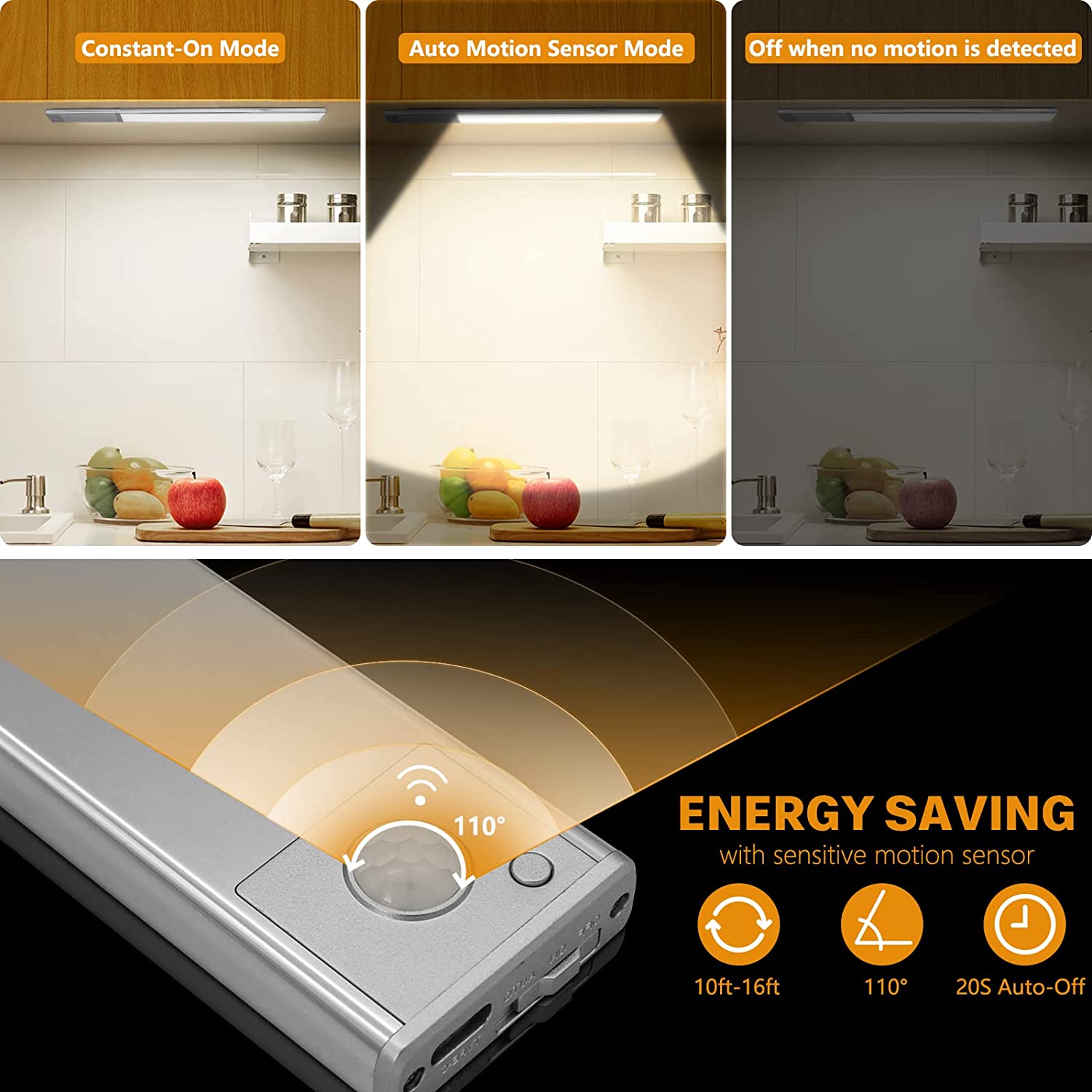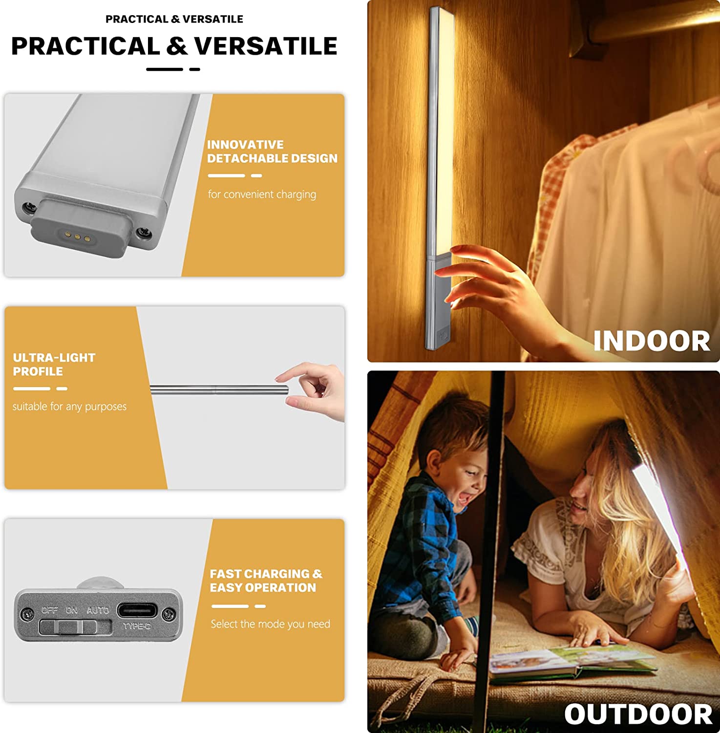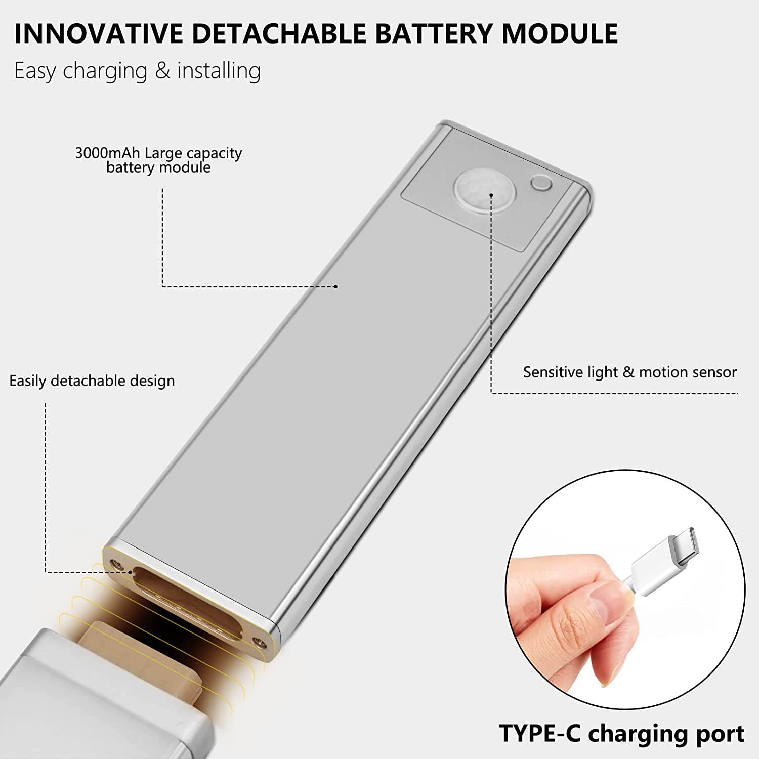 TDL-6111-T拓迪分体式人体感应橱柜灯 磁吸自粘衣柜灯带Type-C充电式酒柜led灯条